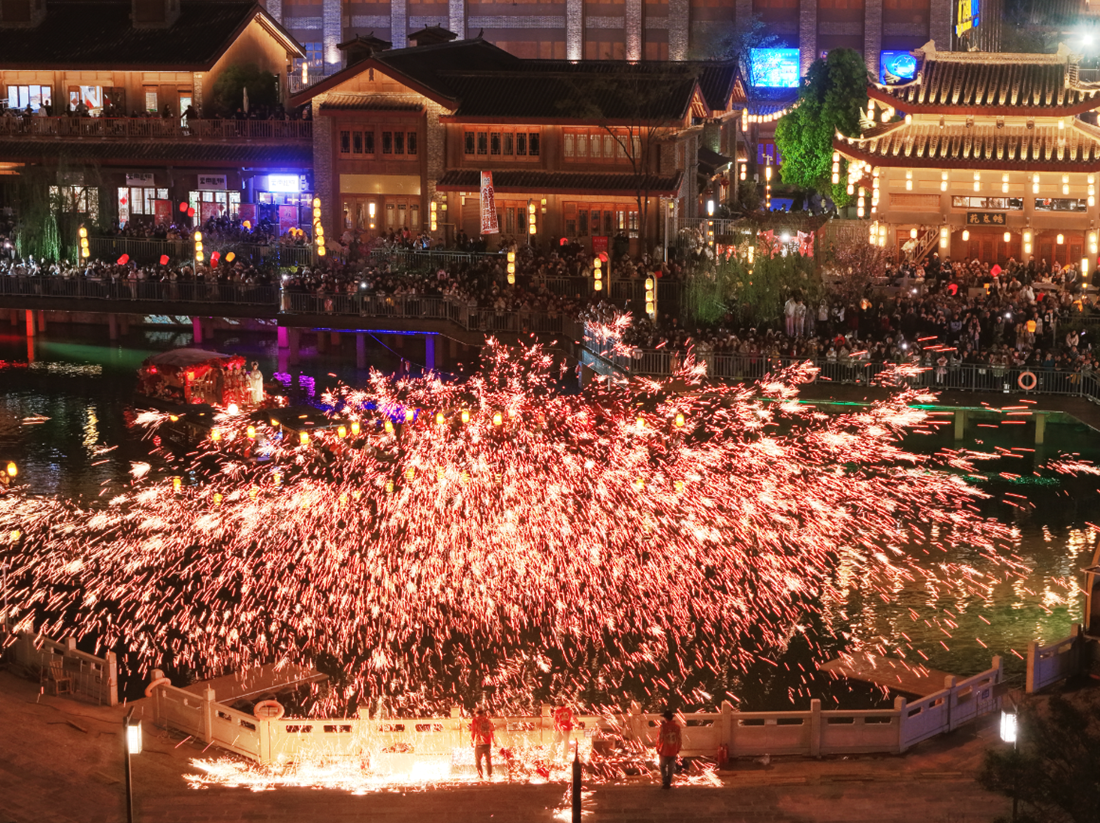 Fire & light show staged in Yunnan for Lantern Festival