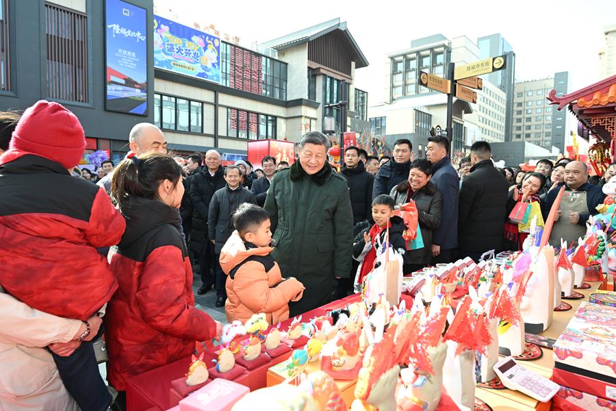 2月9日至10日,中共中央总书记、国家主席、中央军委主席习近平在北京考察并看望慰问基层干部群众。这是10日上午,习近平在东城区隆福寺街区新春市集考察时,同现场群众亲切交流。新华社记者 谢环驰 摄
