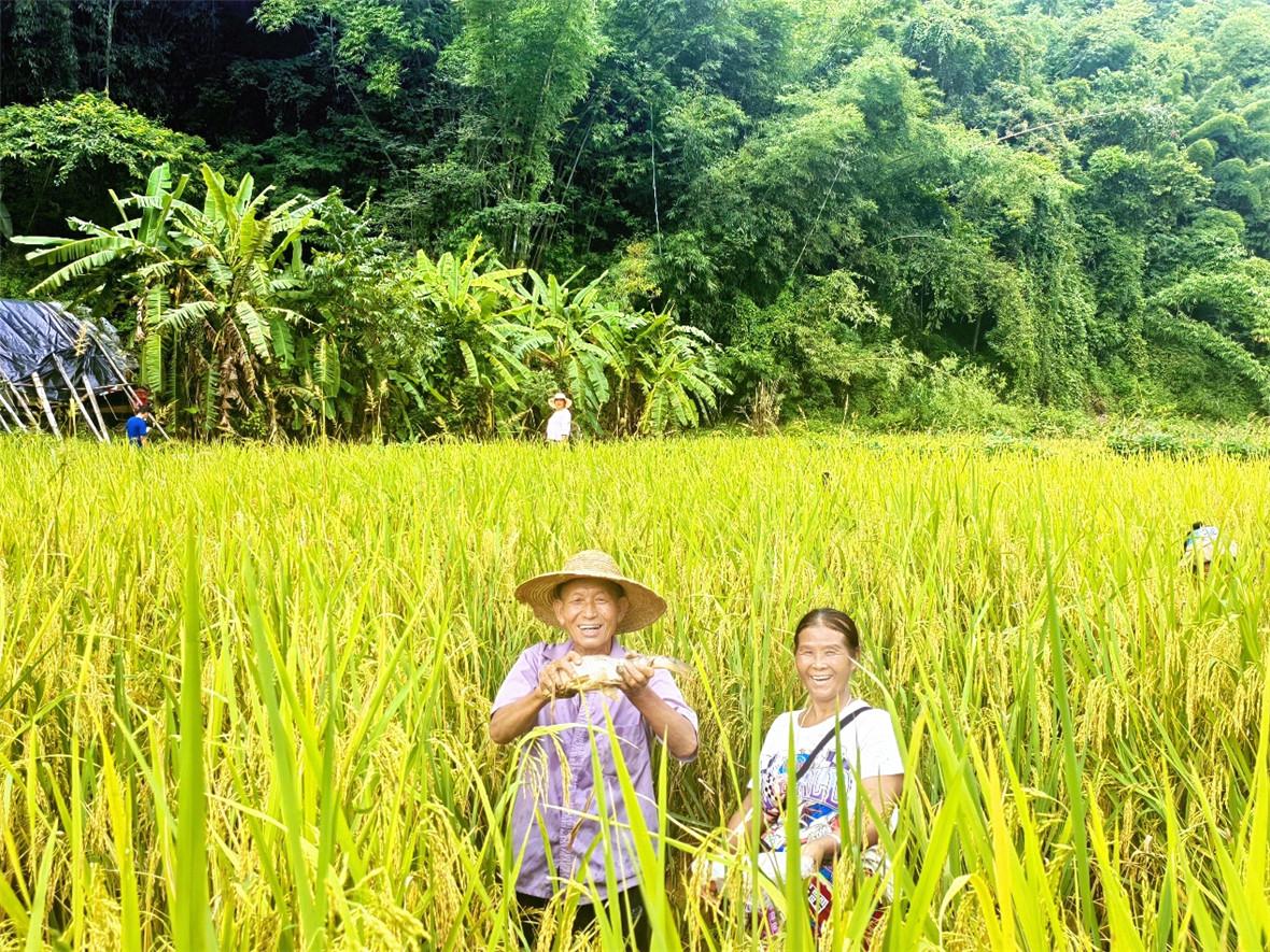 德宏傣族景颇族自治州芒市中山乡小街村民小组,玉米金黄,稻鱼共生试养成功。村民古铜色的脸上皱纹舒展,笑意在田埂间飞扬。民族体育赛事正酣,欢呼声、哨子声与纯粹的笑声交织,让边境的秋日格外欢腾。