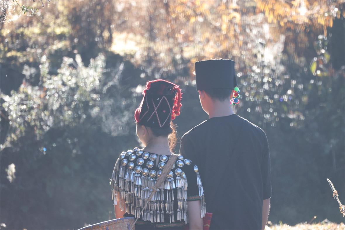 在西双版纳傣族自治州勐腊县磨憨镇磨龙村,盘王节正热闹举行。一位瑶族女性身着亲手缝制的黑底缀银传统服饰,她自幼跟随长辈学舞学艺,如今又将这份手艺与仪式传予后人。看到传统文化得以传承,她的笑容满是欣慰。