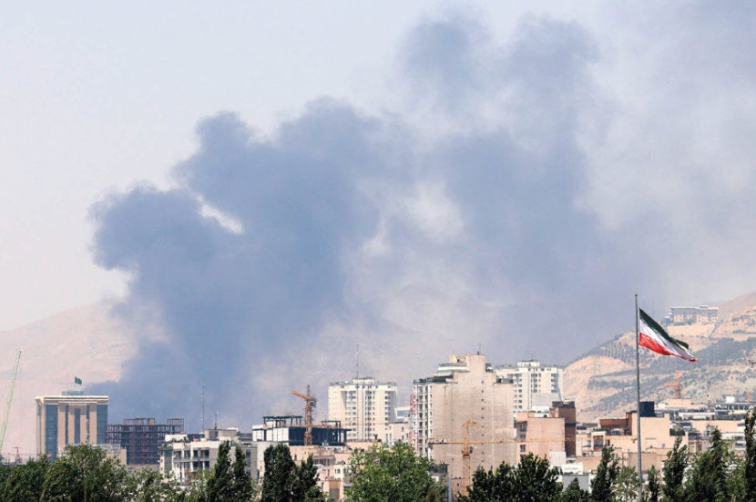 6月16日,在伊朗首都德黑兰西北部地区,一处储油设施遭以军袭击后产生浓烟。