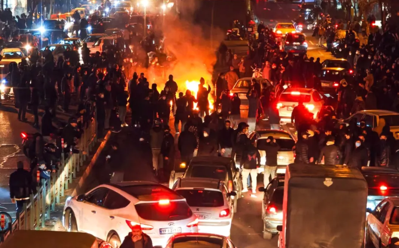 Protesters backed by the U.S. and Israel flock on an Iranian street.