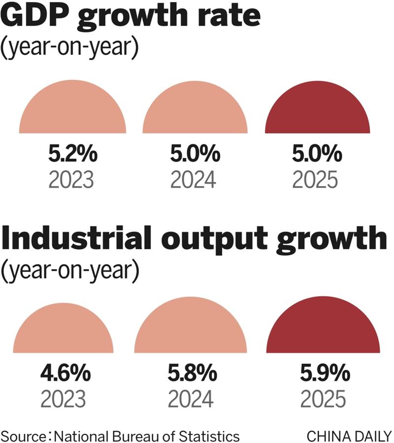 Official data released on Monday showed that China's gross domestic product grew 5 percent last year, meeting the country's annual target of around 5 percent. The hard-won performance, achieved amid heightened tariff pressures, has laid a solid foundation for a steady start to economic growth in 2026, reinforcing confidence that the world's second-largest economy remains on a stable trajectory.