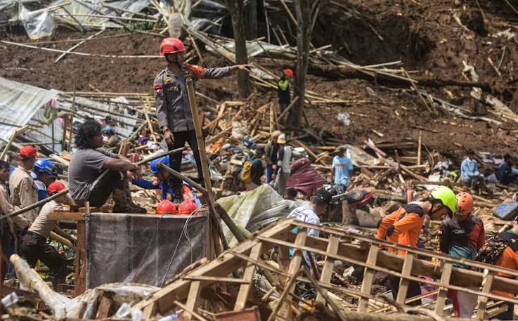 Rescuers search for landslide victims in Pasirlangu village, Bandung, West Java on Jan 25, 2026. Photo: AFP