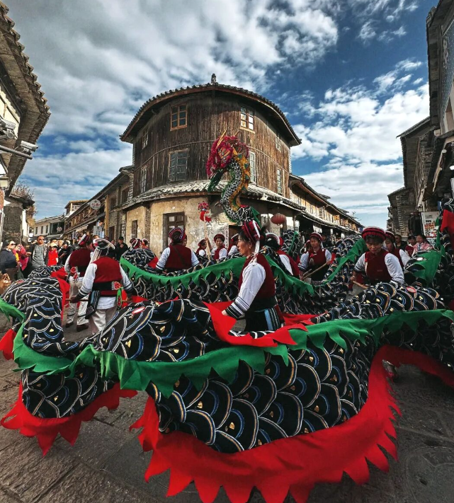 ชมขบวนแห่มังกรอันยาวเหยียดที่เคลื่อนผ่านถนนในเมืองโบราณ ทุกช่วงส่งท้ายปีเก่าต้อนรับปีใหม่ สถานที่ต่าง ๆ เช่น เมืองโบราณสี่โจวในแคว้นปกครองตนเองชนชาติไป๋ต้าหลี่ ขบวนแห่มังกรในชุดชนชาติไป๋จะแห่ไปตามถนน ท่ามกลางเสียงฆ้องและกลอง มังกรใหญ่พลิ้วไหว มังกรเล็กกระโดดโลดเต้น ส่งพรตรุษจีนสู่ทุกครัวเรือน ที่นี่ คุณไม่ใช่แค่ผู้ชม แต่ยังสามารถเข้าร่วมขบวนแห่เก็บทั้งความคึกคักและความเป็นสิริมงคลของทั้งถนนไว้ในภาพถ่ายและความทรงจำ