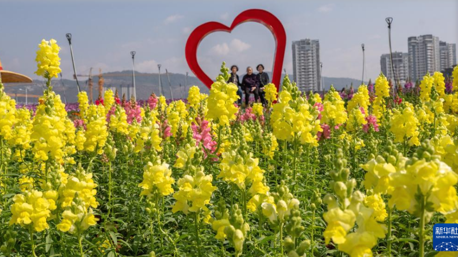 วันที่ 23 กุมภาพันธ์ นักท่องเที่ยวชมดอกไม้ในสวนแห่งหนึ่งที่เมืองเหวินซาน แคว้นปกครองตนเองจ้วงและม้งเหวินซาน มณฑลยูนนาน
