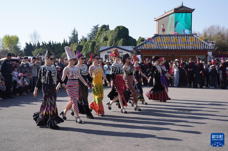 วันที่ 22 กุมภาพันธ์ นักแสดงในหมู่บ้านชนชาติยูนนานจัดแสดงโชว์เครื่องแต่งกายประจำชาติให้นักท่องเที่ยวชม