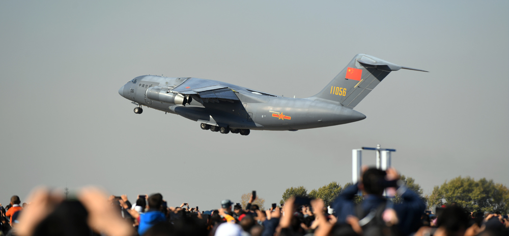 10月17日,“天之翼”飞行表演队进行飞行表演。 当日,庆祝人民空军成立70周年航空开放活动在吉林长春开幕。