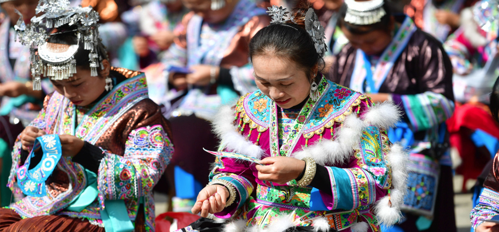 连日来,桂粤黔三地妇联、人社、扶贫等部门在桂黔乌英苗寨开展为期一周的“产业到家牵手妈妈”巾帼脱贫行动,通过举办刺绣技能培训、刺绣擂台赛等活动,提高她们脱贫致富的本领。