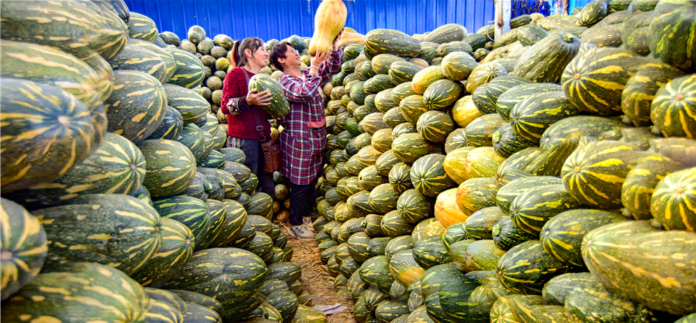 近年来,云南省弥勒市瓜农科学合理利用土地资源,在15000余亩葡萄地里套种金瓜,瓜农实现葡萄、金瓜双丰收。