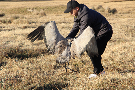 近日,剑川县森林公安局成功救助了一只翅膀受伤的国家二级保护动物——灰鹤。